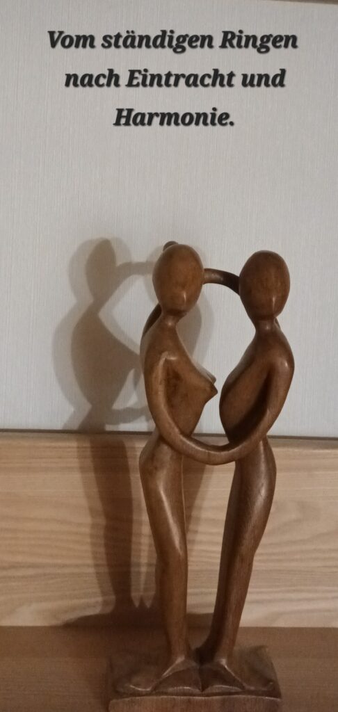 Vielleicht wollte die Künstlerin oder der (unbekannte) Künstler mit seinem WERK der von WOHLWOLLEN und UNEIGENNUTZ geprägten LIEBE DER MENSCHEN UNTEREINANDER, namens AGAPE, einfach mal ein MAHNMAHL setzen?! Schließlich sind wir auf kaum einem anderen Gebiet so defizitär wie auf diesem! Gut gemeinte Appelle wie: „Passt bloß auf, damit Ihr nicht…“ könnten sich gut dahinter verbergen.